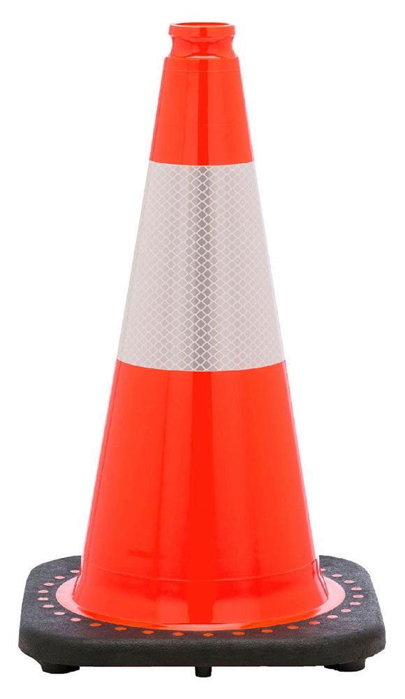 Govt Agency 18" Orange Traffic Cone, 3 lb Black Base, w/6" 3M Reflective Collar