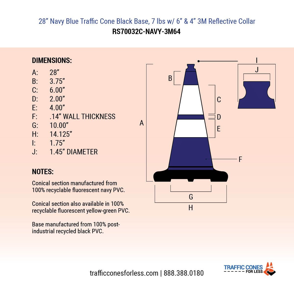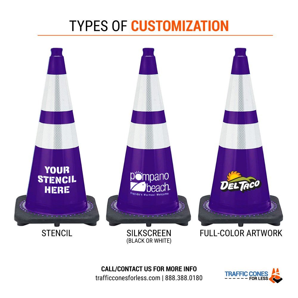 28" Purple Traffic Cone, 7 lb Black Base, w/6" & 4" 3M Reflective Collar