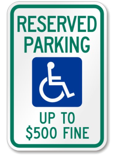 ADA Handicapped Sign: Reserved Parking Up to $500 Fine
