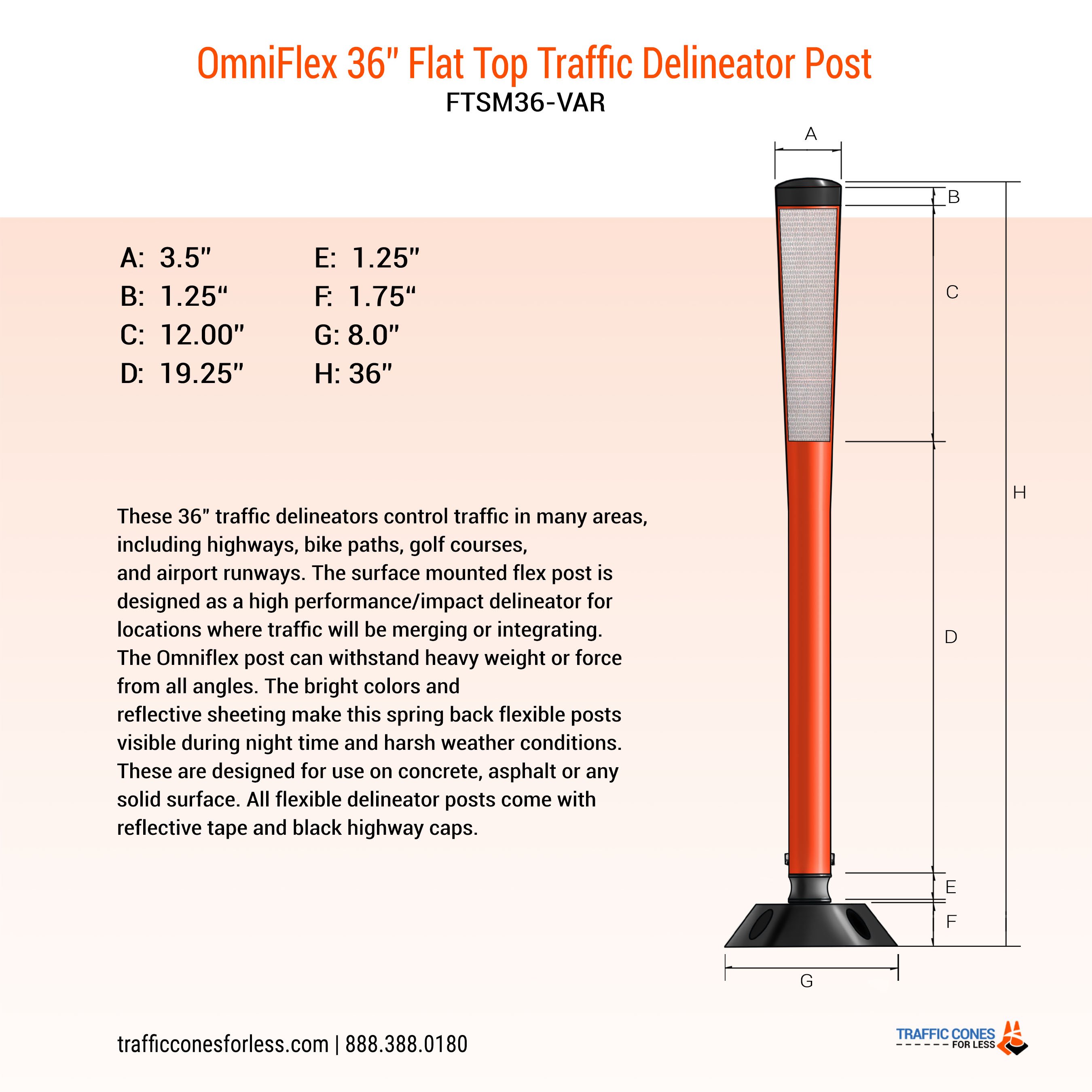 Omniflex 36 Inch Flat Top Traffic Delineator - 250 Pack