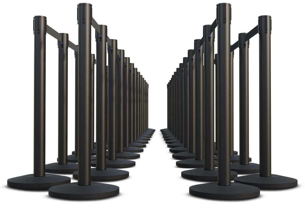 Black Finish Premium Stanchions w/Retractable Belt - 50 pack