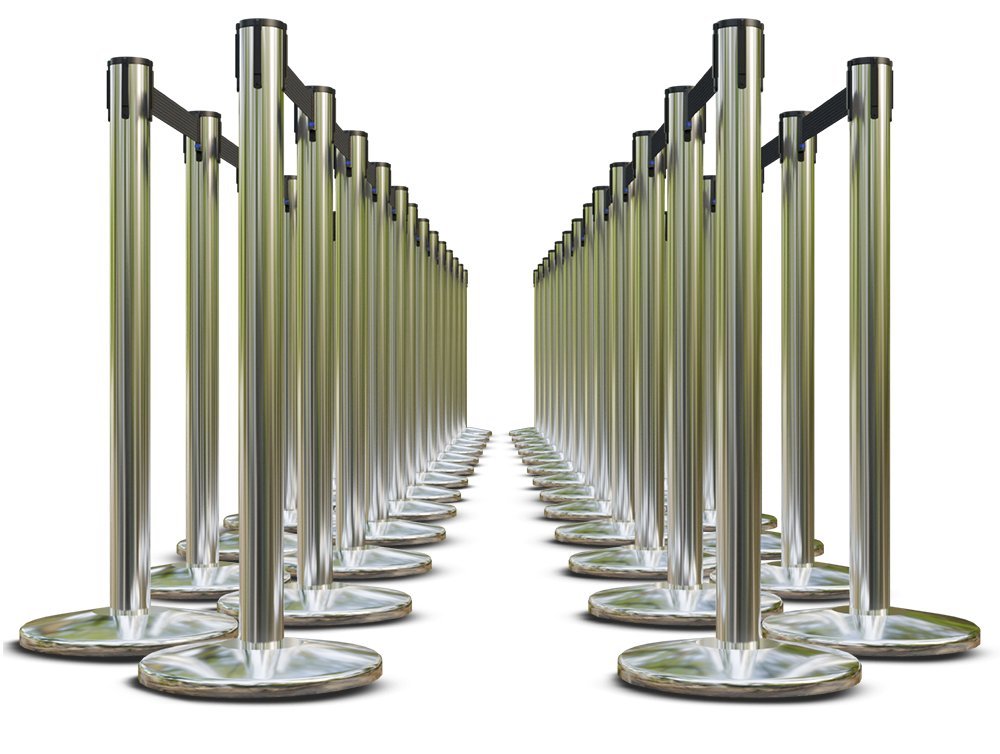Stainless Finish Premium Stanchions w/Retractable Belt - 50 pack